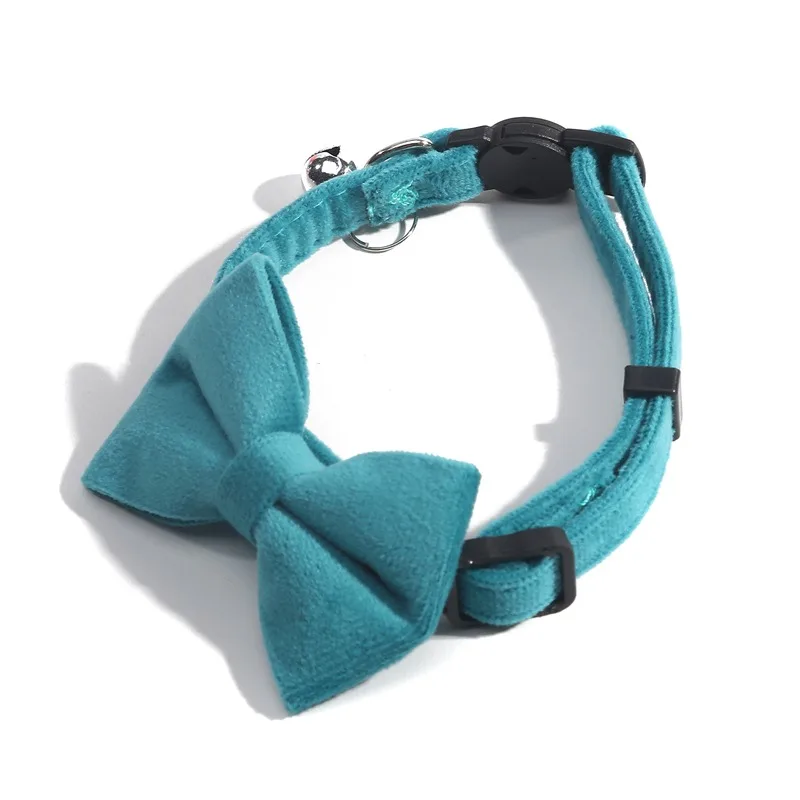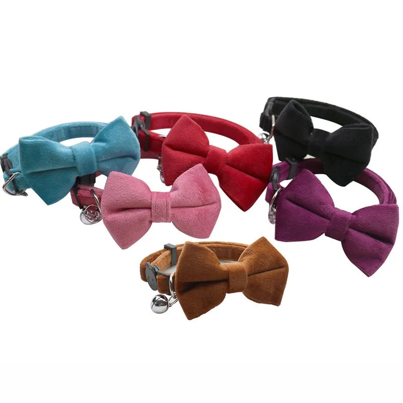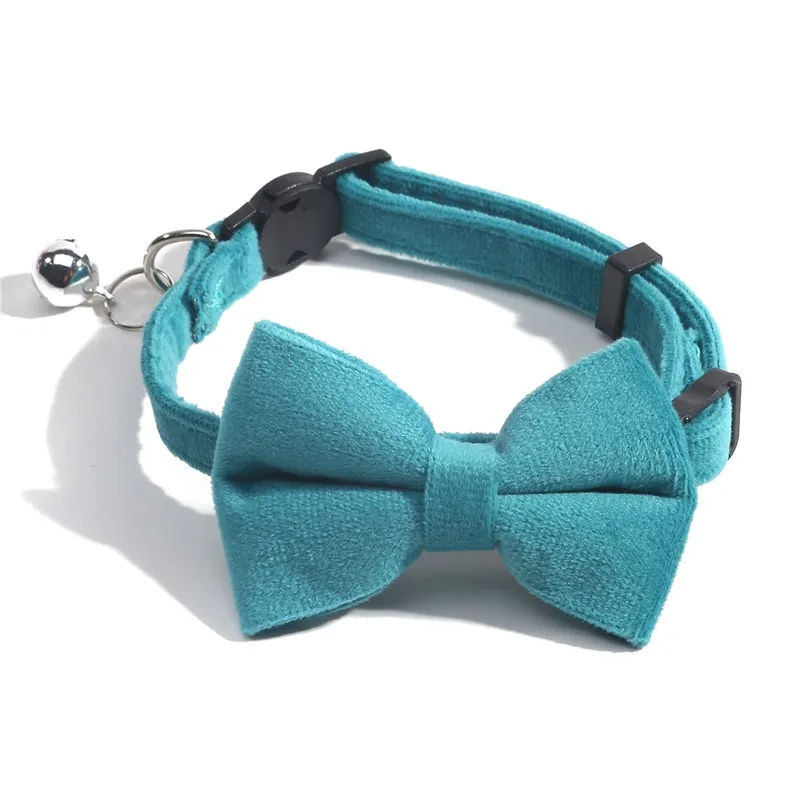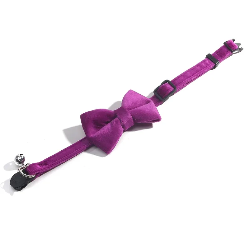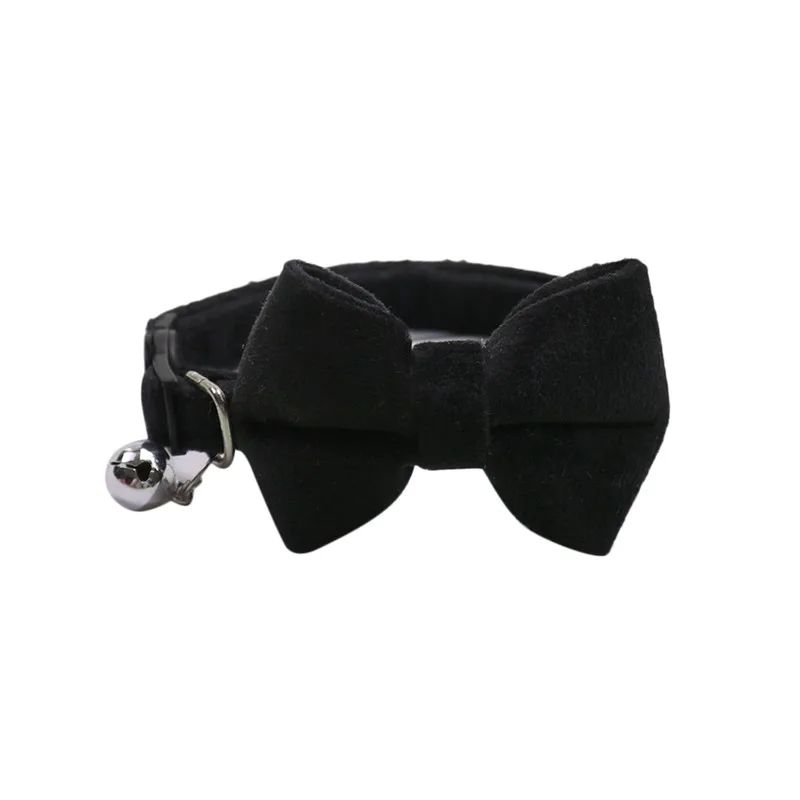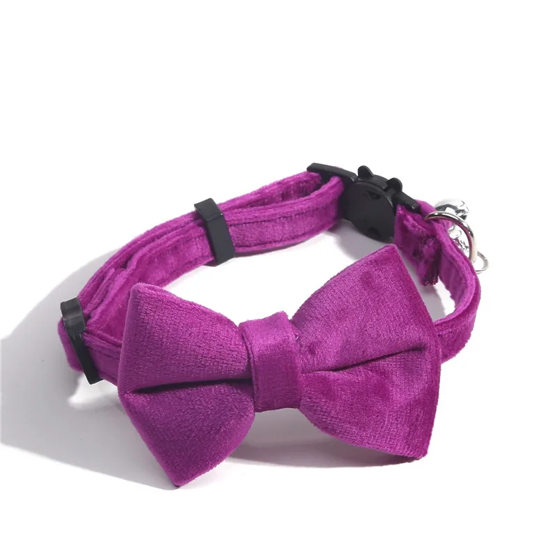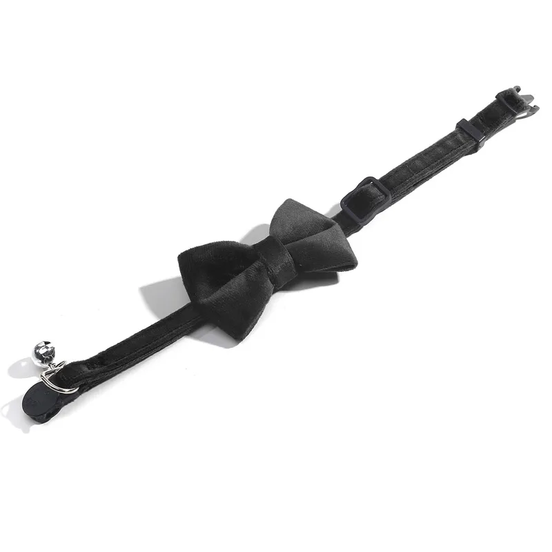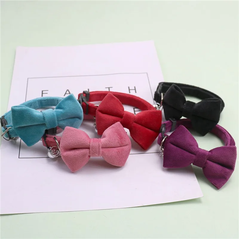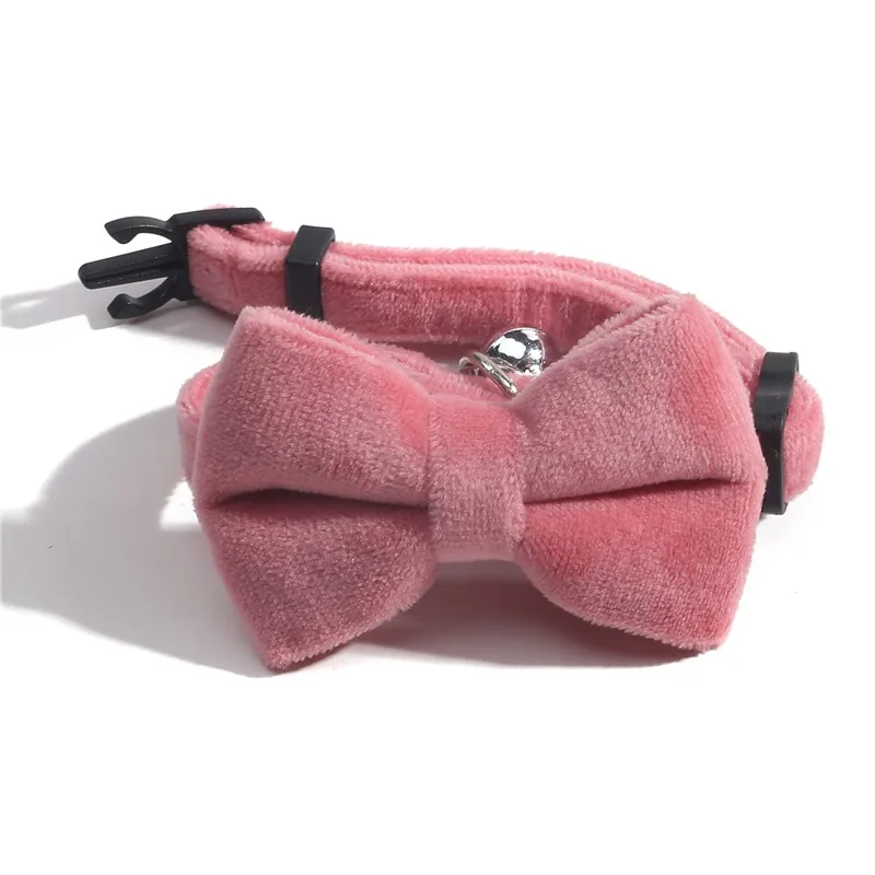 Cat Velvet Collar Solid Color Bowknot Puppy Chihuahua Collars with Bell Adjustable Safety Buckle Cats Bow Tie Pets Accessories