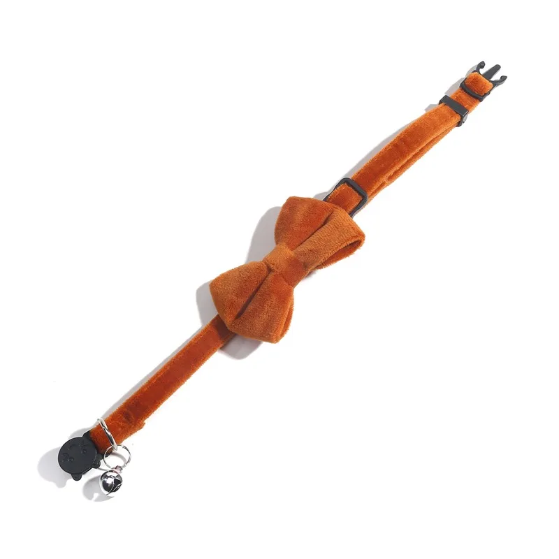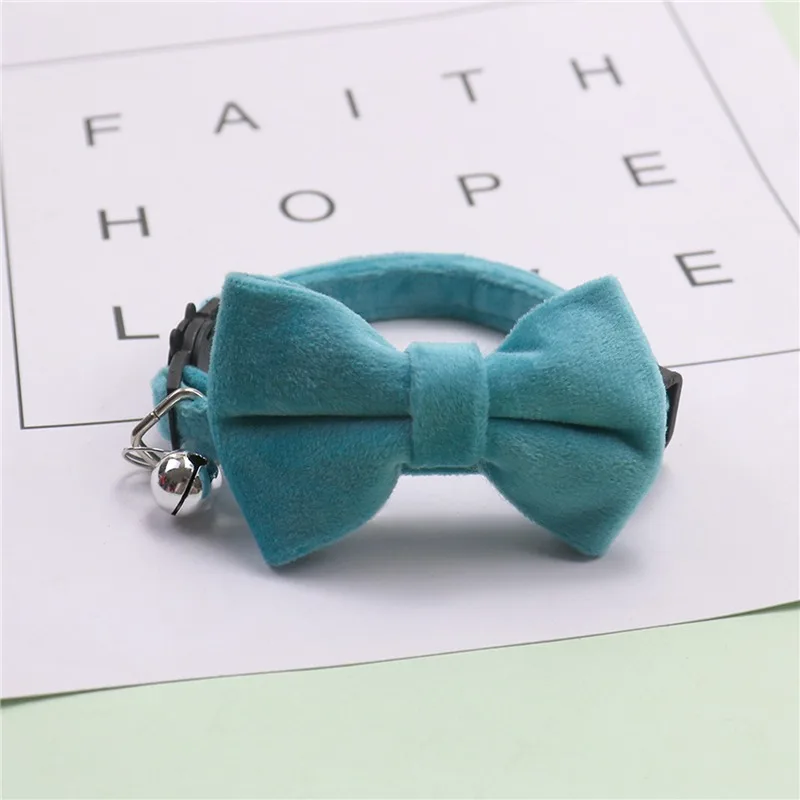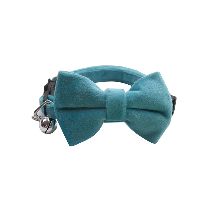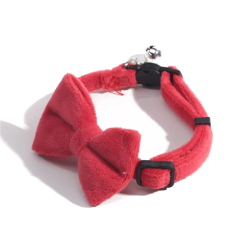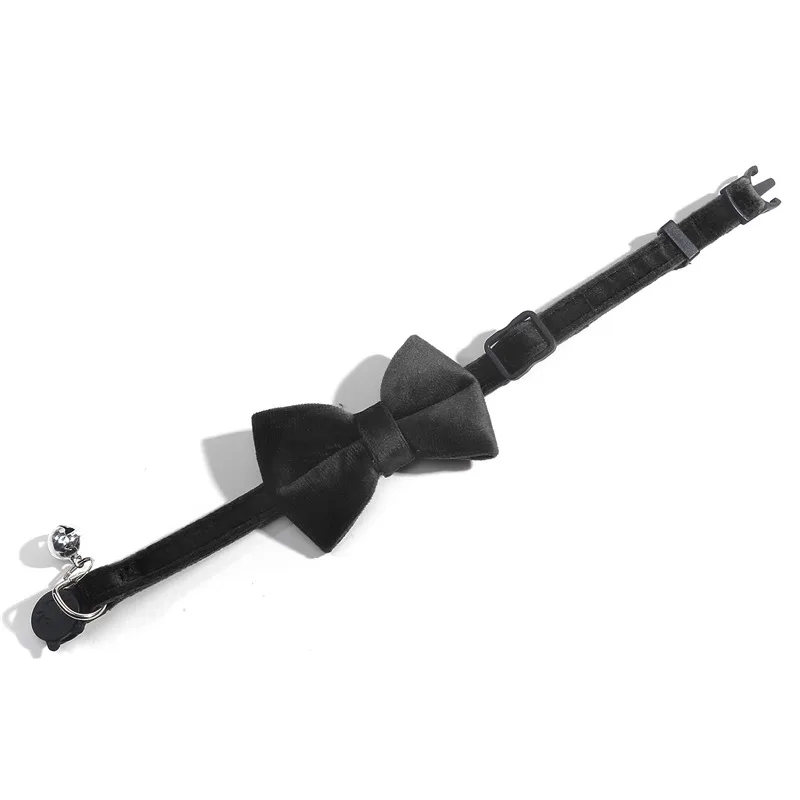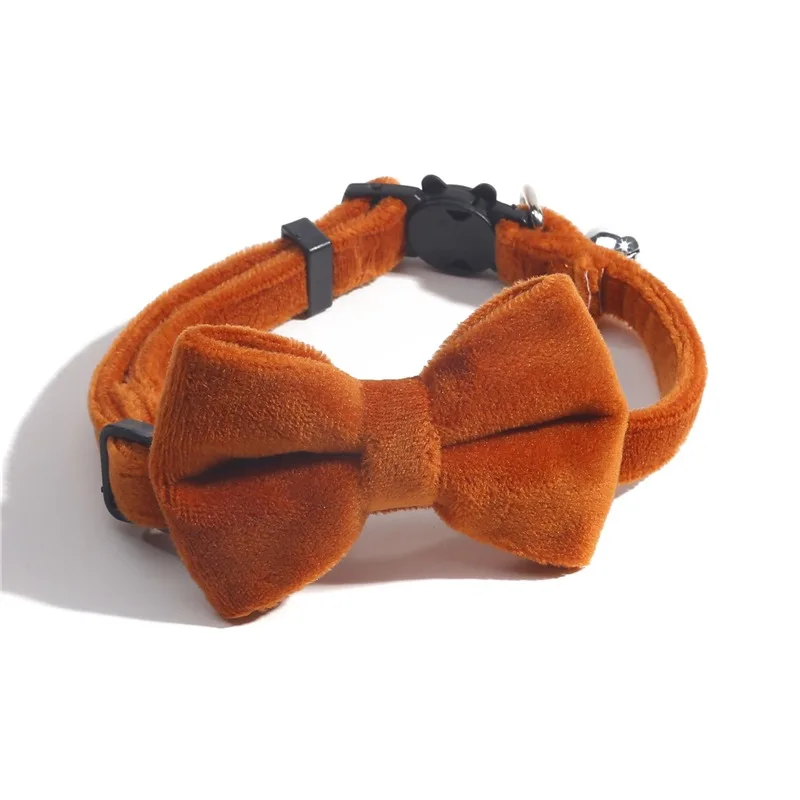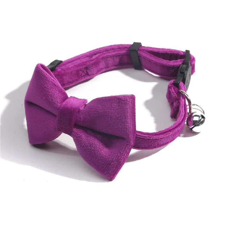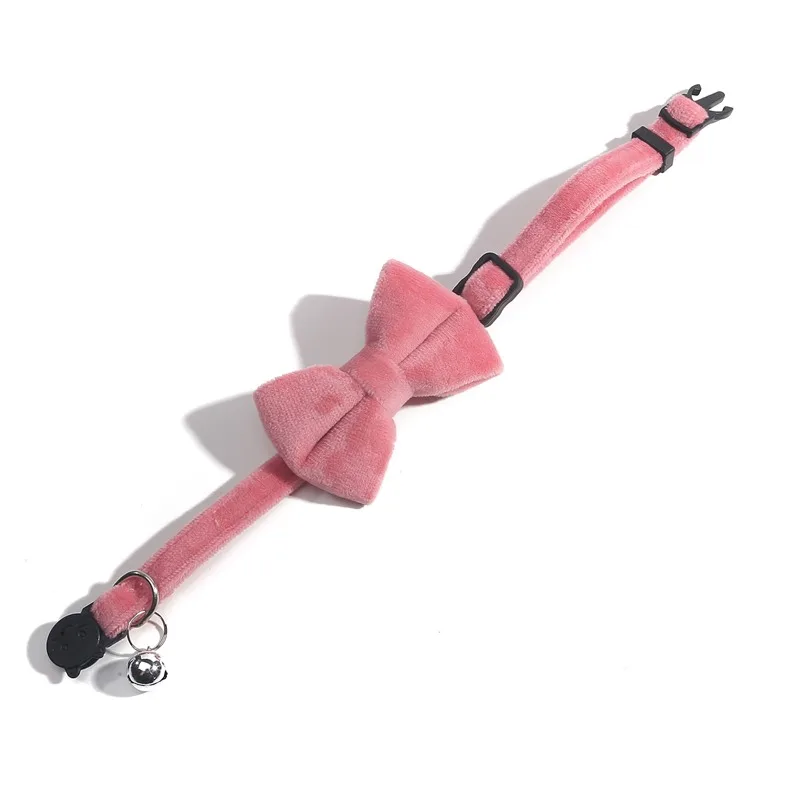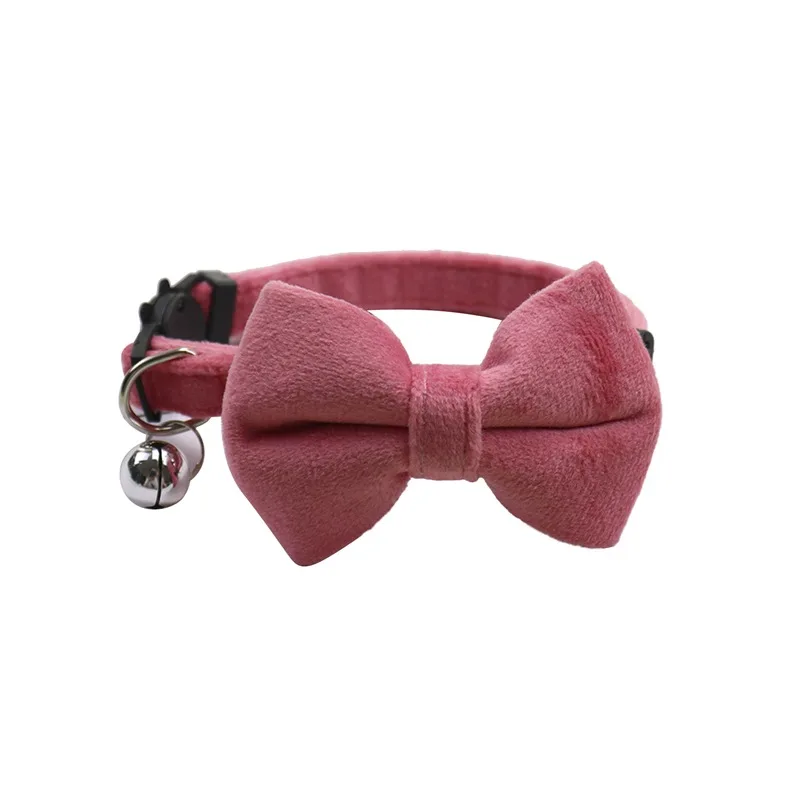 Cat Velvet Collar Solid Color Bowknot Puppy Chihuahua Collars with Bell Adjustable Safety Buckle Cats Bow Tie Pets Accessories