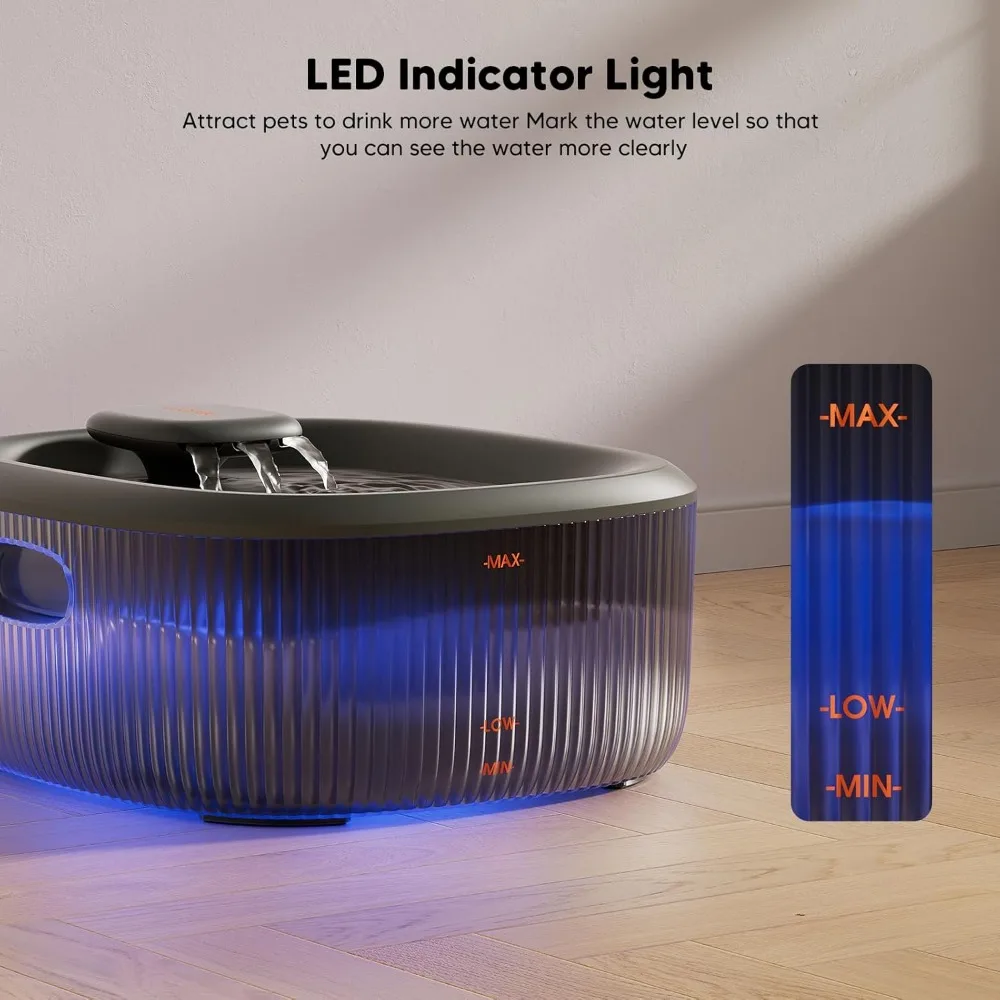 - 【Smart LED Light Reminds Water Fills】Our pet fountain comes with visible water level window, makes it easy to monitor the remaining water levels. dog water fountain with the upgraded anti-drying water pump, which features power-off protection. When the water level reaches the minimum water level line, (LED light changes from white to red when water runs out), you can refill it for your pet in time without any hassle. And, the water basin still has 16oz of water in case of emergency.